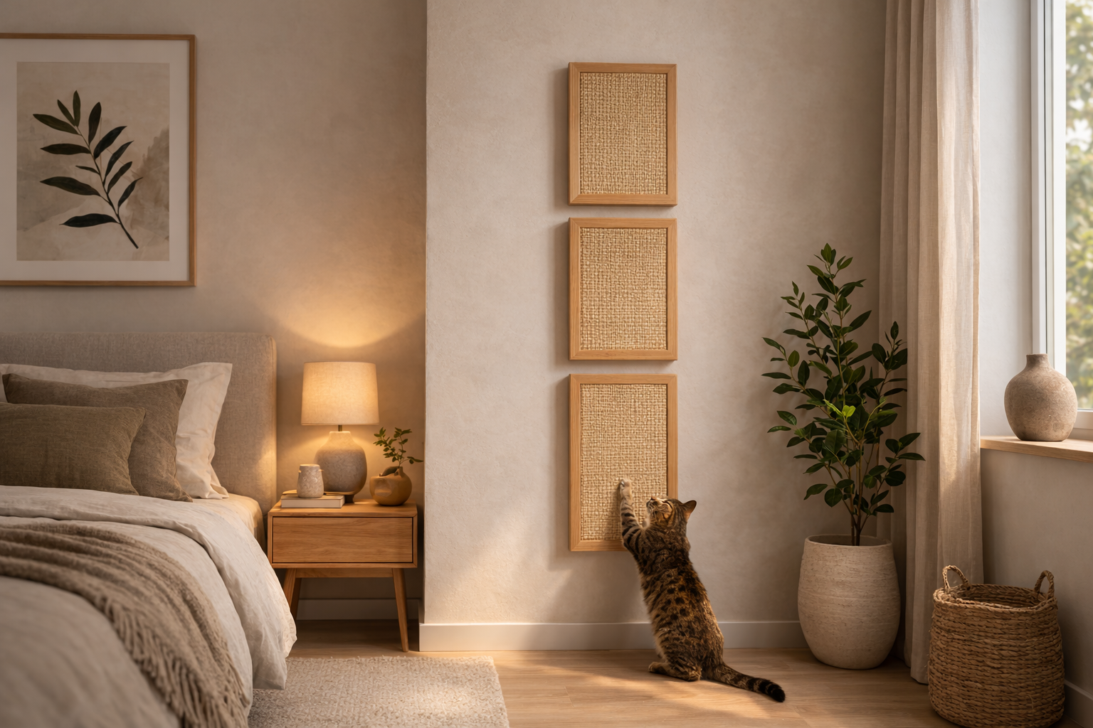 Wall-mounted scratching panels designed for homes where ordinary pet furniture feels out of place.